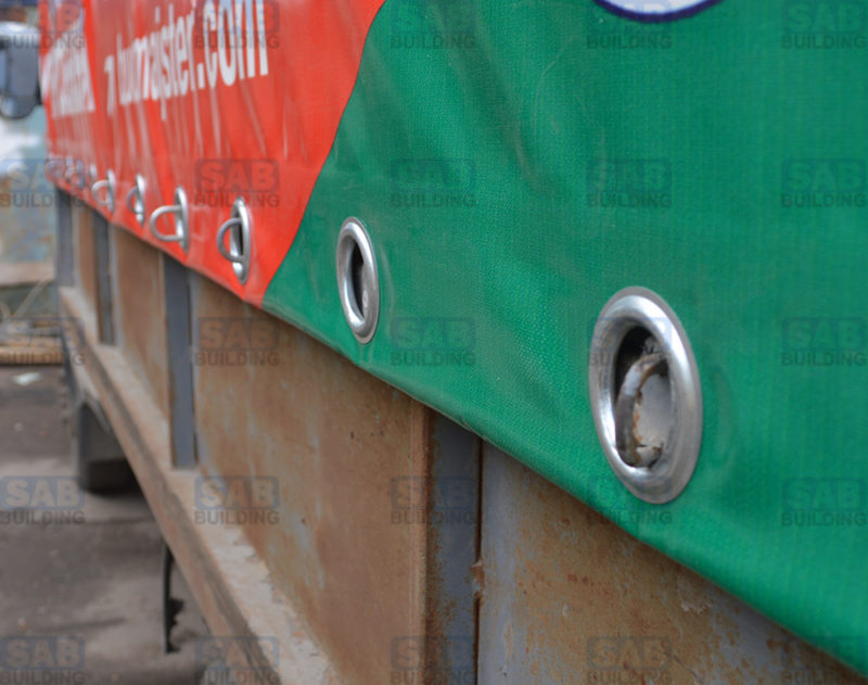 Большинство тентов по умолчанию имеют установленные по таможенным нормам люверсы, в прочем их можно установить и на уже готовый тент. Тем не менее, при изготовлении нового тента будет правильно соблюдать таможенные требования и поставить люверсы и скобы для пломбировочного троса. Для более прочного крепления, люверс устанавливается в подворот, а места спайки тента необходимо пропаивать таможенным валиком.