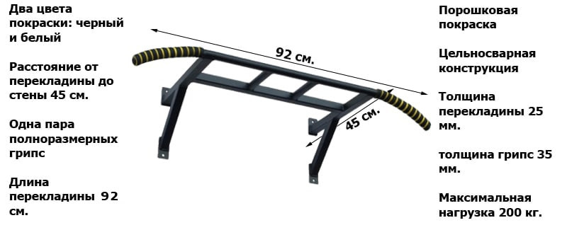 Вторым недостатком можно считать нерегулируемую длину от стены до перекладины. Впрочем, стандартной длины в 45 см. более чем достаточно.