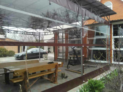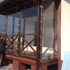 Для изготовления прозрачных штор мы предлагаем вам материалы от мировых производителей (Корея,Япония,Испания,Бельгия…) . Объемная цветовая гамма тентовых материалов основательно впишется в гармонию с вашим жилищем. Монтаж чаще осуществляется на деревянных строениях, но и отсутствие деревянных элементов беседок и, террас не является помехой установке прозрачных штор. Для кирпичных беседок и веранд мы предлагаем вставки из деревянного бруса, окрашенного в общий тон штор и строений.